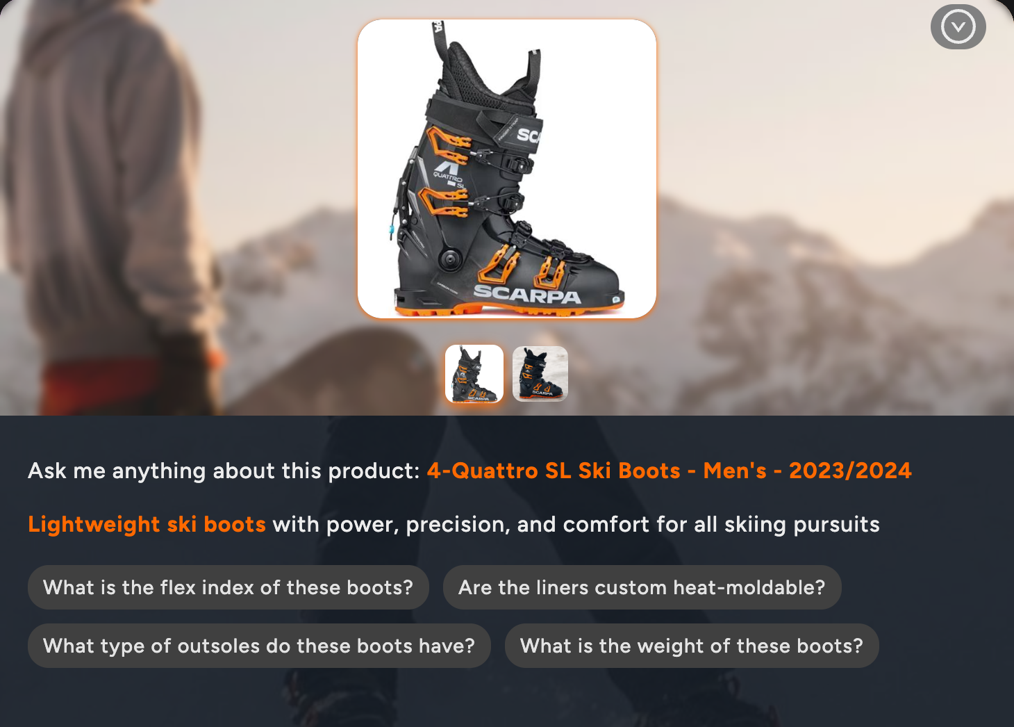 AI chatbots surface relevant product recommendations during every conversation, consistently. When a customer asks about a pair of ski boots, the chatbot can suggest compatible bindings, boot bags, or thermal socks based on the full catalog. When someone inquires about a laptop, it can recommend cases, chargers, or warranty plans. These suggestions are generated from actual product data and relationships, not from a static upsell script that an agent may or may not remember to use.